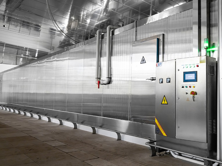 This tunnel freezer has a straightforward design with rapid freezing speed capable of running continuously as part of a production line. In 60 minutes, food is frozen to a central temperature as low as -18°C and an input/output temperature range of +15°C/-18°C. Constructed to meet HACCP guidelines, this equipment guarantees food hygiene and safety.